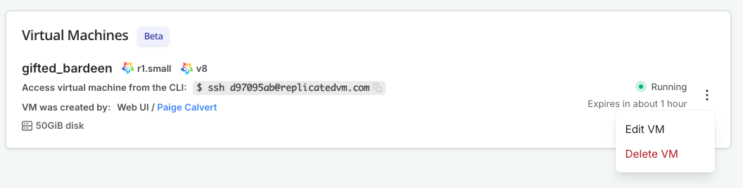 ssh VM_ID@replicatedvm.com